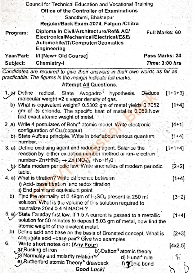 Engineering Chemistry-I || First semester || Question paper 2073, 2074 || CTEVT || Diploma in computer Engineering || IT Engineering